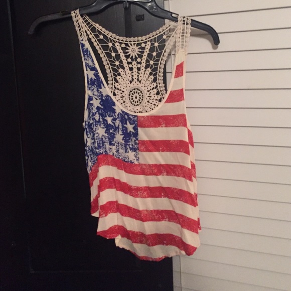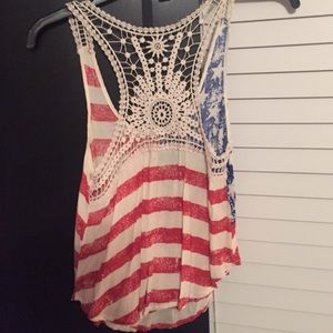 American flag tank with lace back. Super cute on wore once
