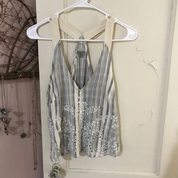 Blue & white striped tank w/ eyelet detail