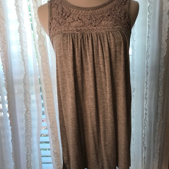 Light grey, lace top tank top. Great condition, never worn! Perfect for hot summer days.