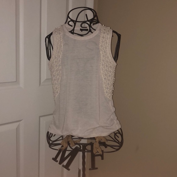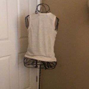 Tank with lace in the front. It’s a high neck style tank top. It fits like a M