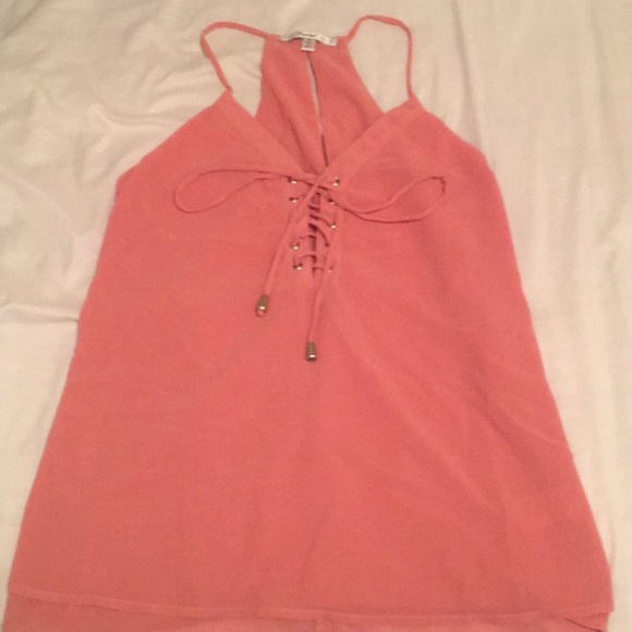 Pink tank top with lace up detail