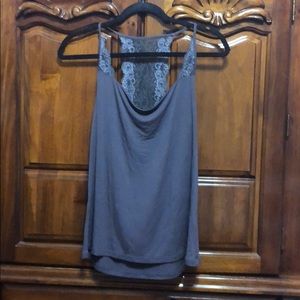 Lace racer back tank. Fun lace detail on front as well. Cowl neck.