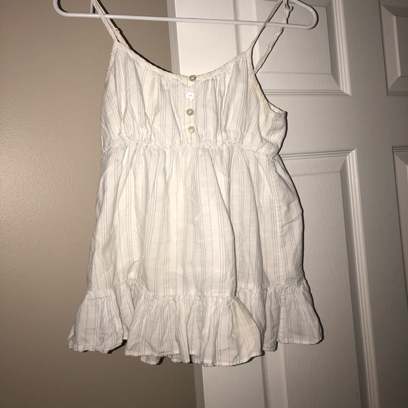 Striped tank (semi crop top) hangs right at waistline *sorry it’s wrinkled!! I’d make sure to wash it and iron it before sending :)