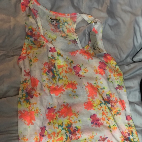 All white tank top with neon flowers all over front and back