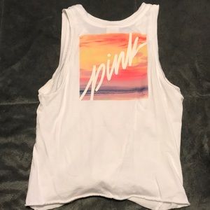 White tank that ties in the front. Has sunset design on the back!