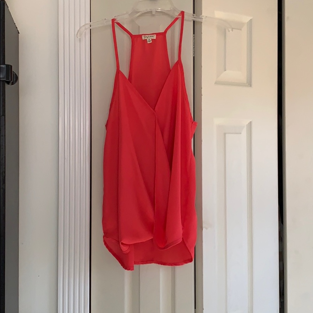 Salmon/mango colored tank top with flowy front. I love this shirt.