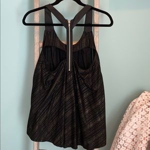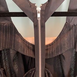 Black with tiny gold shimmery lines. Flowy. Silver zipper on back. Perfect condition! Only worn once.