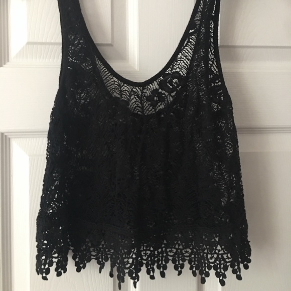 Crocheted tank top black with different crochet on the end super cute