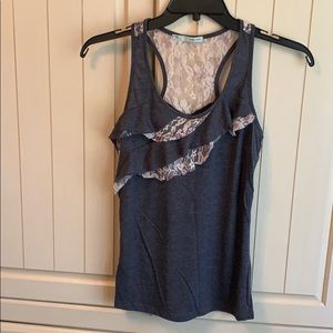 Maurice’s tank with ruffled front and lace racer back