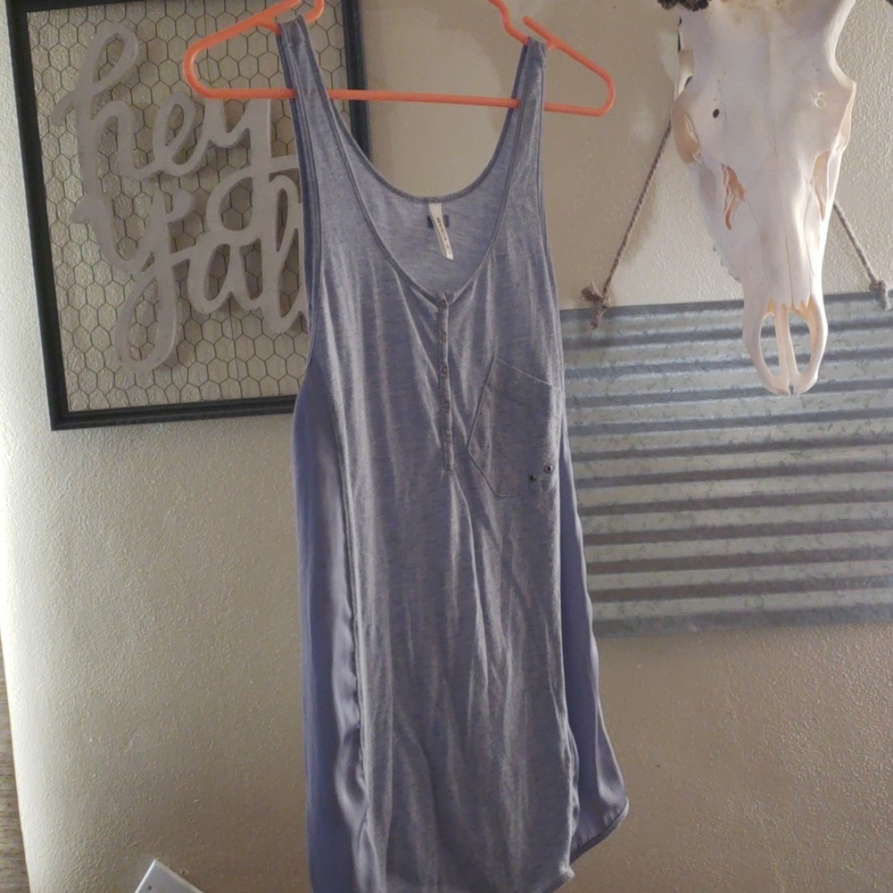 Two tone long tank w/pocket