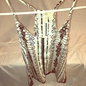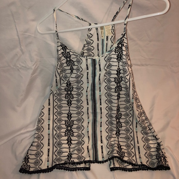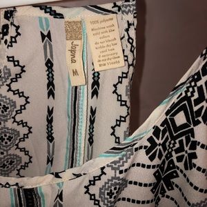 Adorable spaghetti strap halter neck flowy tank blouse. Black and light blue/green and white. Great for summer anywhere!