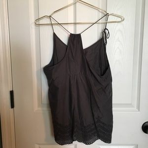 Cute tie detail in straps allow you to adjust where tank sits on you. Crotchet detailed bottom