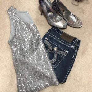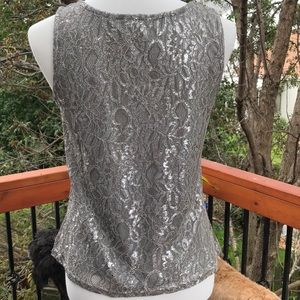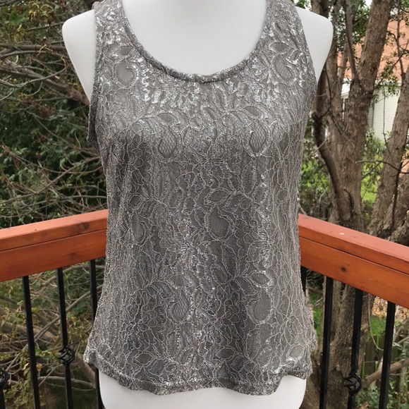 Silver, gray and tan lace tank top. Can be dressed up for work or dressed down for a night out. Stretchy material. New without tags and never worn.