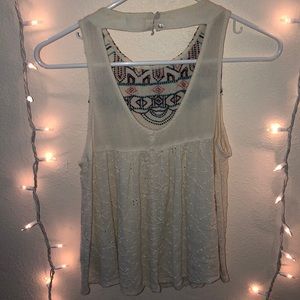 Sheer Tank top, Beige color, cut in the back