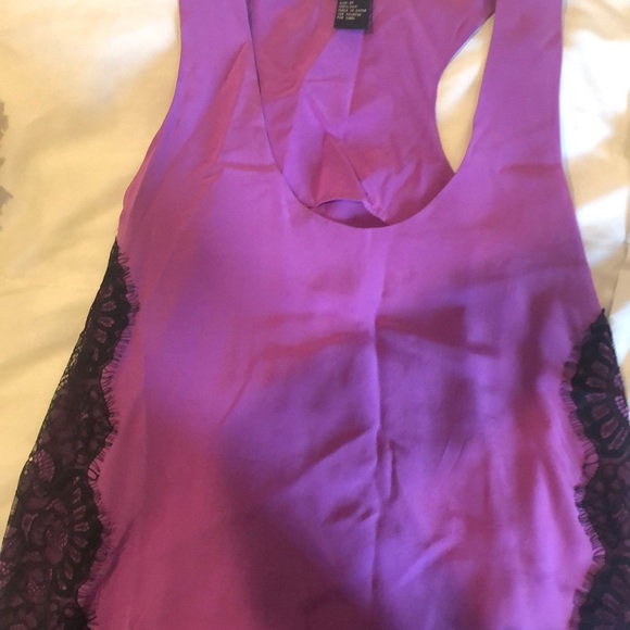Purple with lace trim on the side, easy to throw on wear it on a night out or just to hang out