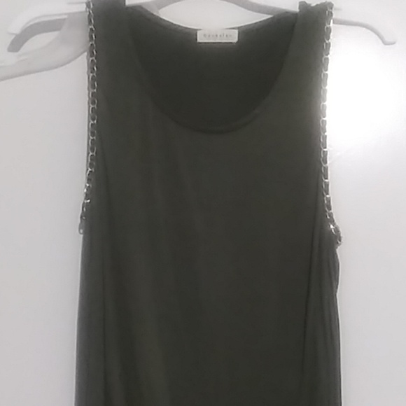 Cute olive color tank with gold chain detail at arm