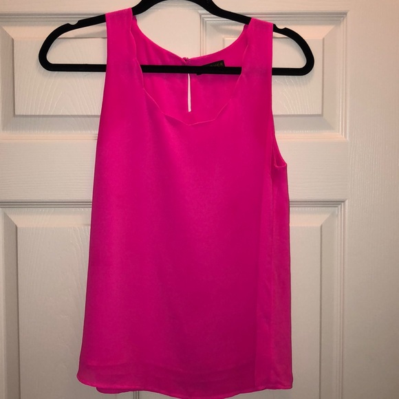 Bright pink tan top Lined Scalloped neckline Button clasp on back