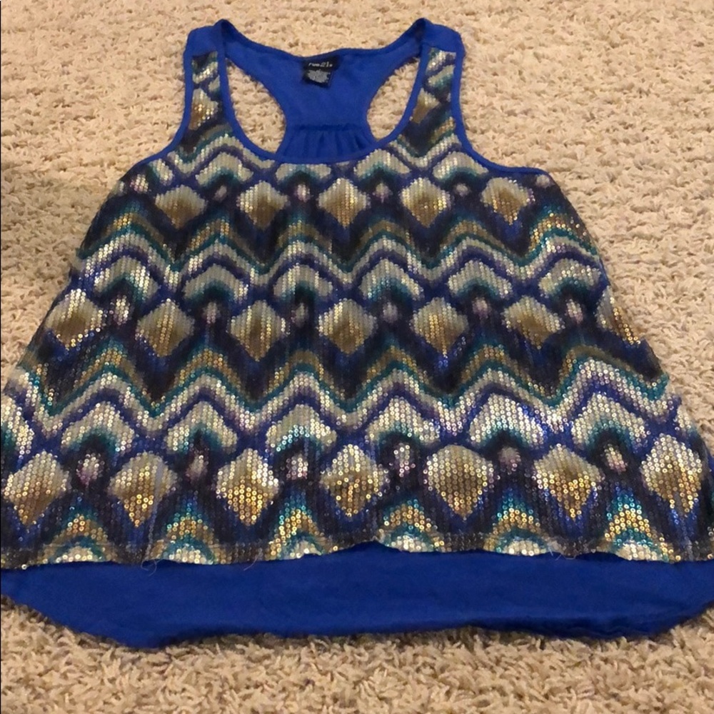 Royal blue tank with fever on sequins