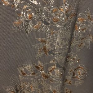 Silver and gold rose pattern. Size large but I think it fits like a medium