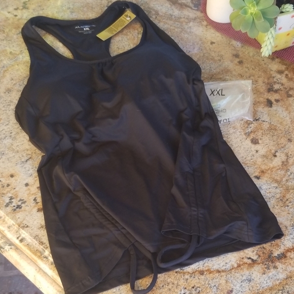 Tank. Shelf bra. 'Same Material as Under Armor' Beautiful flows. Runs slightly smaller. NWT. Still in bag. Bottom has pull to tighten.. in picture.