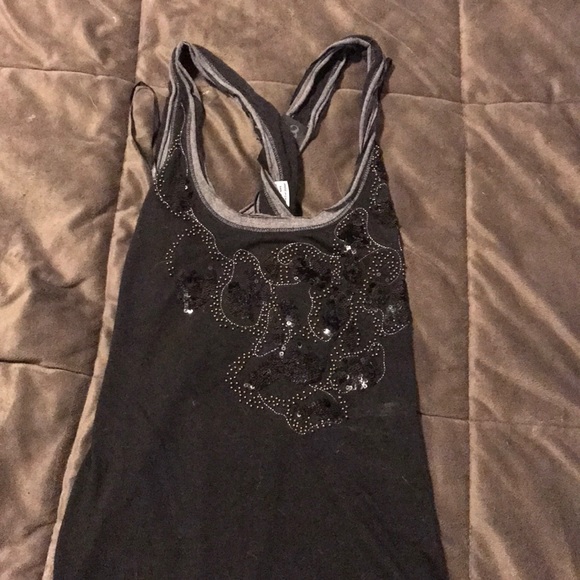 Black cross cross tank from miss me. Beading work on top, none missing.