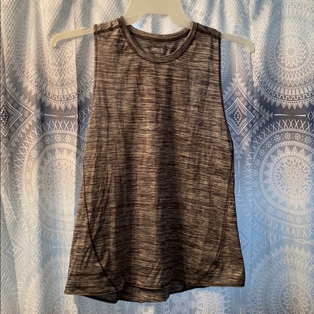 Dri-more exercise tank with gathering in the back. Pit to pit 17” Pit to hem 14” Hem across hips 20&1/2”