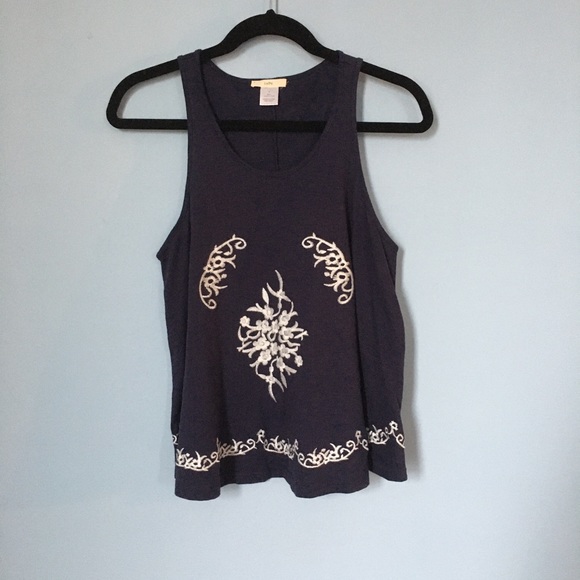 High-neck embroidered tank