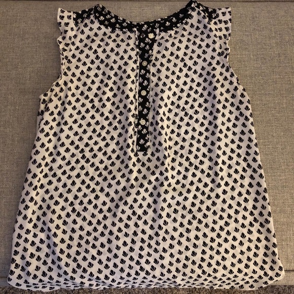 This is a great top for work. The fabric is lightweight but professional. The tanks has frill on the “cap” sleeve.