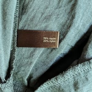 Sage green tank. Left side zipper for easy on. Right shoulder had bunched fabric to model a bow or flower.