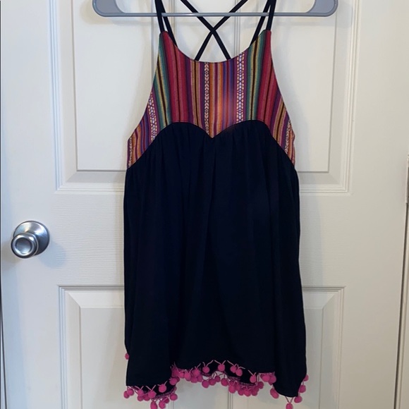 Cute tank with a fun pattern & pink pompoms. Worn once!