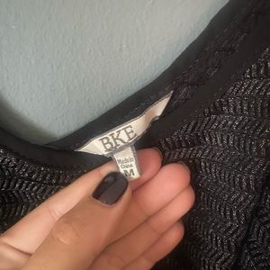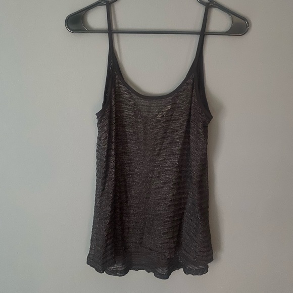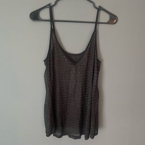 Silver shimmery tank top from Buckle. Fairly see through so goes great with a bralette/tank underneath. Worn once for New Year’s Eve party.