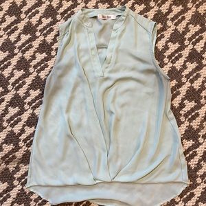 High/low tank with knotted front. This is a pale mint color and is sheer.