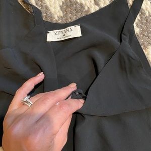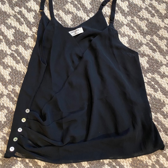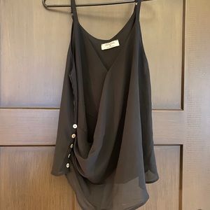 Asymmetrical front tank with buttons as a accent to this top. It has button closure on the bust to keep you modest.