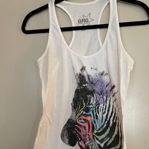 Grg white tank. Zebra picture on front