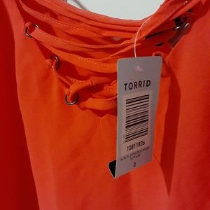 Orange Torrid tank top with criss cross details at the neckline. Still has tags has never been worn.