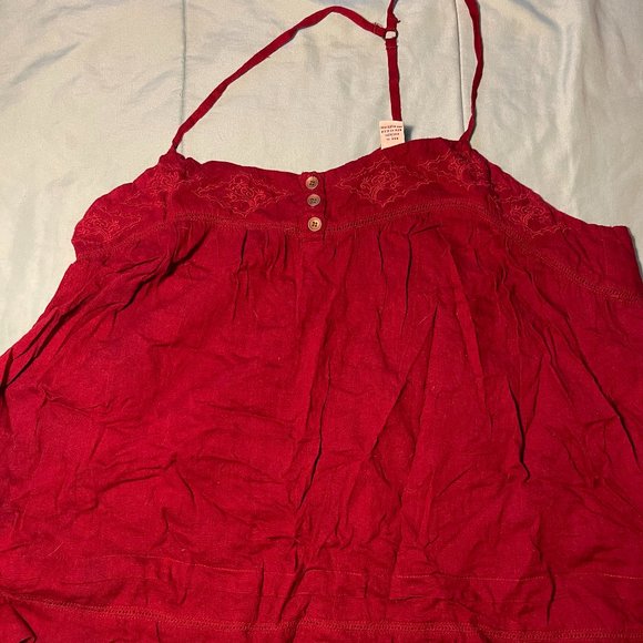 T shaped strap in the back. Loose and flowy.
