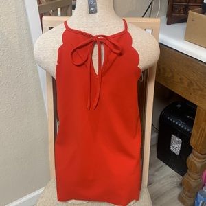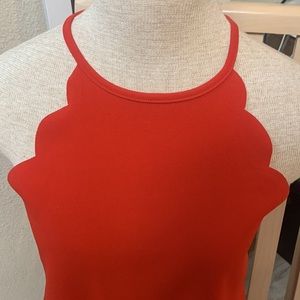 Red scalloped tank top ties behind the neck very flattering super cute size small but could fit a small or a medium but at a little boutique offers welcomed🤗