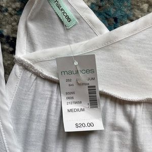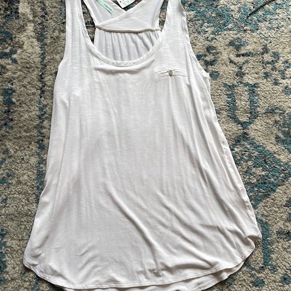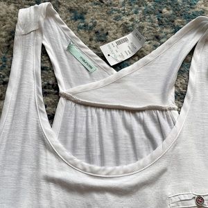 Adorable soft Maurice tank. New with tags, no flaws. Soft and flowing look. Cute back strap detail that crosses. Has button faux pocket to front.