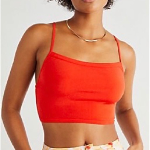 Free people strapped in tank in bright Orange. This color is no longer available online and for good reason. Super cute color. Worn once. Adjustable straps