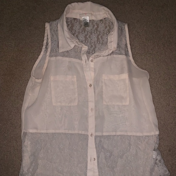 Sheer blouse; tank top; kind of a peach color; size medium; no stains, hardly worn maybe once or twice