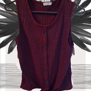 Olivia rose sweater tank, cotton, maroon, large, ties in the front bottom of shirt, Brandon new.