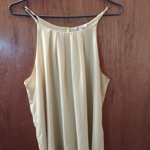 michel satin tank, lemon, large, button on the back neckline, very flowy.
