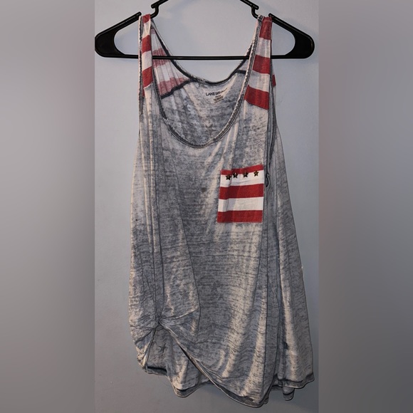 4TH OF JULY DISTRESSED TANK. BRONZE STARS ON POCKET.