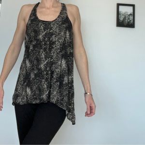 DKNY Pure crisscross back asymmetrical hem jersey tank in stone print