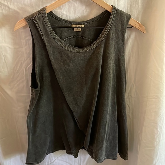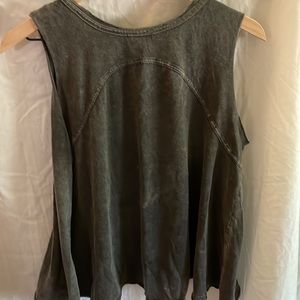Comfortable swingy tank. Semi-cropped. Opening in the front.