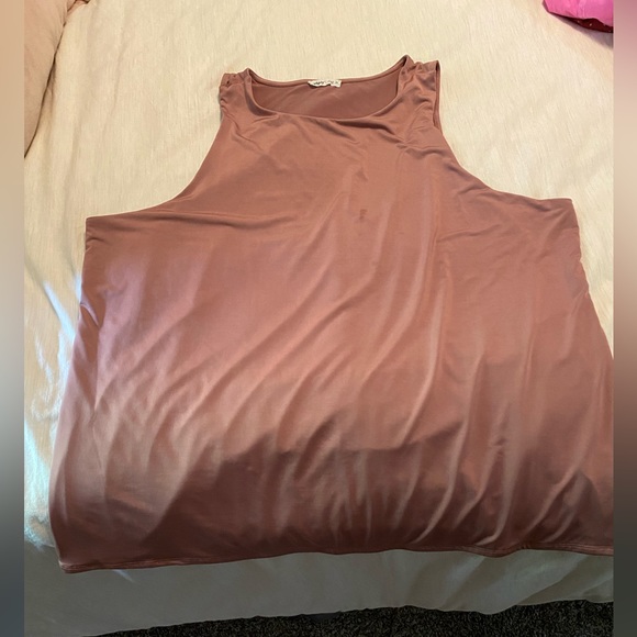 Fitted tank top, tan in color. Size 3x. Stain on shirt but will wash out with a stain remover!