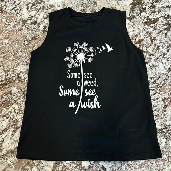 Tank top with design on front. Similar to cut off tee material.