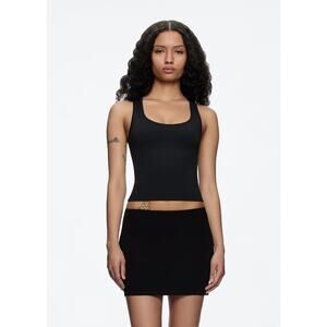 Racerback tank top with scooped neckline. Designed with a slightly cropped body and subtle flare at hem. The System Tank is cut from our signature heavy-weight, sueded stretch jersey. It has a soft feel, strong hold, and a matte finish. Intended for a very close fit that should hug you in all the right places. 88% Polyester, 12% Spandex.