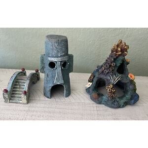Tank Aquarium Decor Lot Of 3. Sponge Bob Decoration Condition is Used.