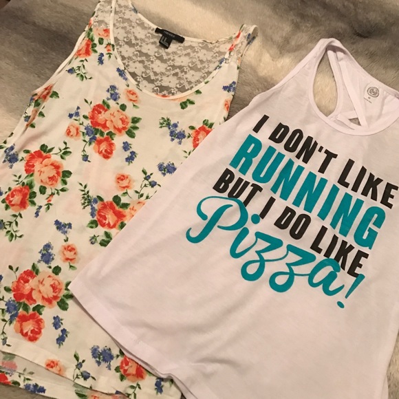 floral tank is flowy and cute. Right one is tighter and more for working out in. Sold together or separate. Separate $8 each (right tank is the brand SO)
